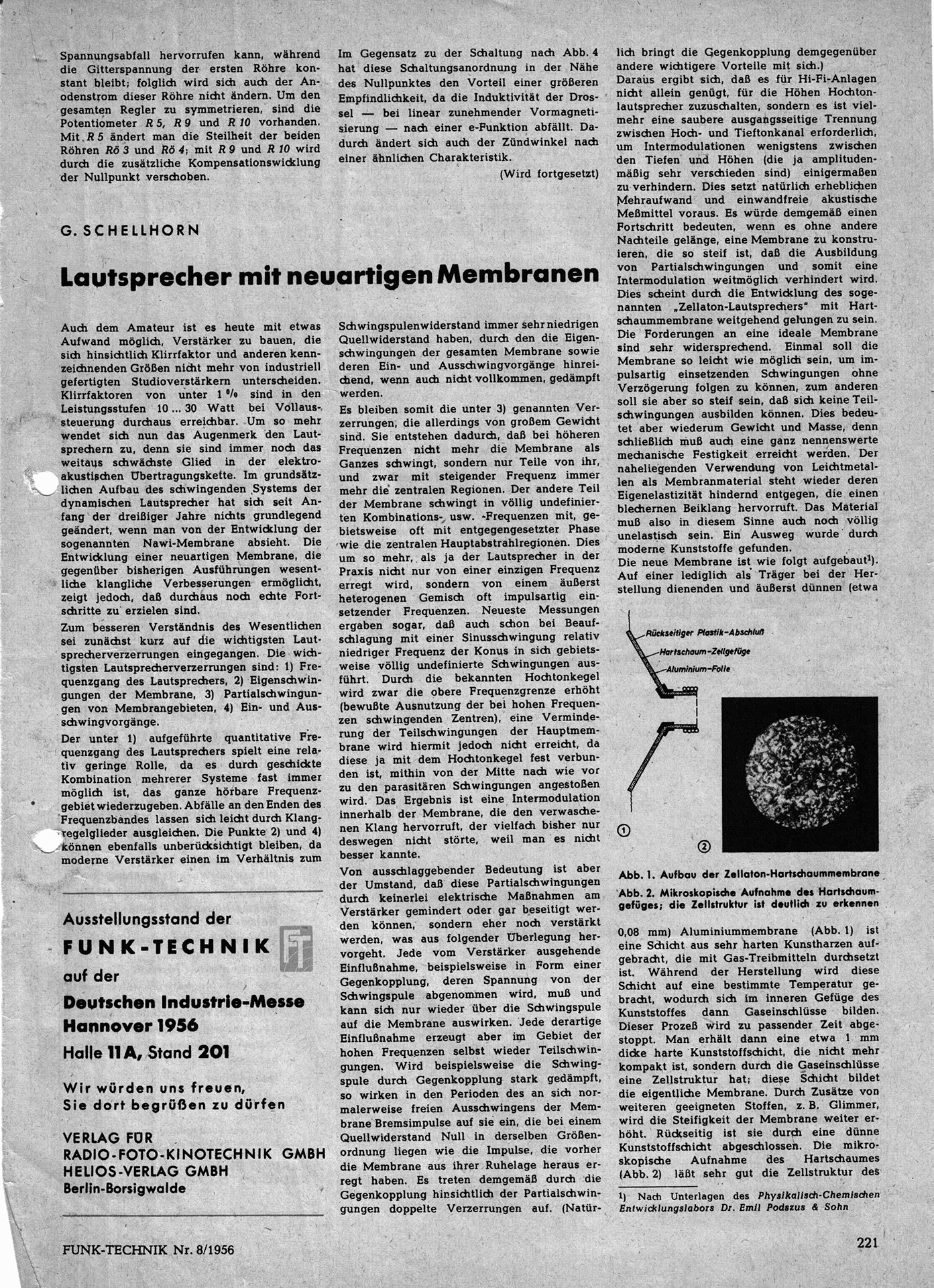 Das wichtigste Anliegen blieb jedoch die Verbesserung der Membran. Er verwendete mit Lack und Harz getränkte gehärtete Gewebe, später unterschiedliche in Lack eingebundene Fasern und Füllstoffe und experimentierte mit unterschiedlichen Membranstärken bis er endlich die Lösung fand: Einen auf einem Träger erstarrten Schaum mit Blasen unterschiedlicher Größe - eingeschlossen durch wenige hundertstel dicke Wände. Durch Variation der Folien auf der Vorder- und Rückseite sowie der Menge und Art der Füllstoffe konnte er die Schallleitung und -dämpfung sowie die Härte bzw. Steifigkeit der Membran weiter optimieren. Der nächste Schritt in die richtige Richtung war die Verwendung von Kunststofffolien für die Sicke und die Zentrierung, durch deren Gestaltung der Geometrie er das Impulsverhalten entscheidend verbessern konnte.